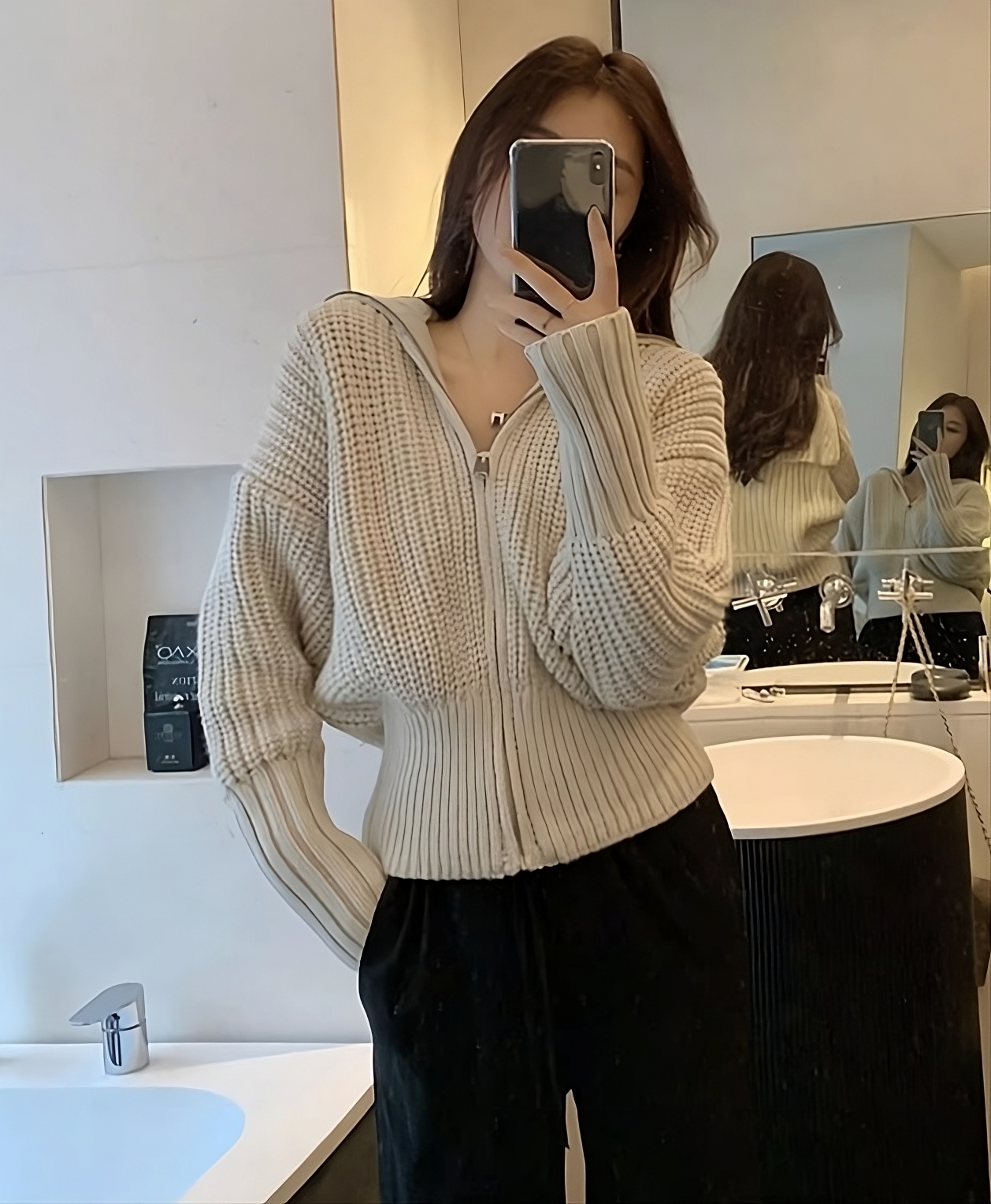 Beige Zip-Up Knitted Cardigan | Taehyung – BTS
