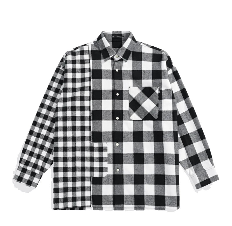 Black and White Patchwork Checkered Shirt | Jinjin - Astro