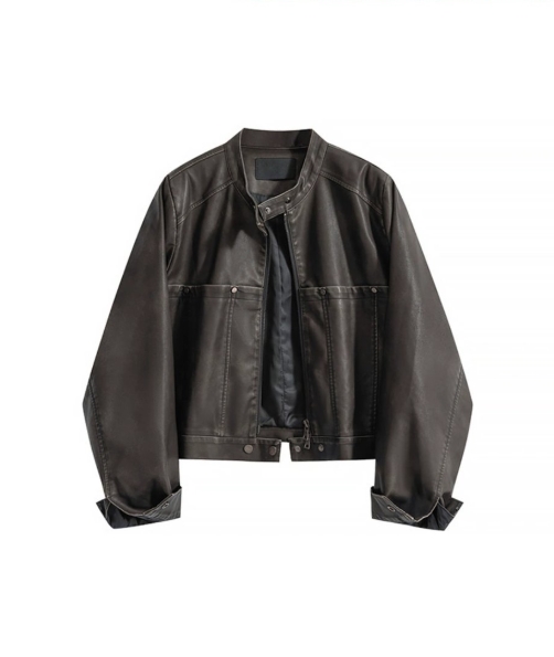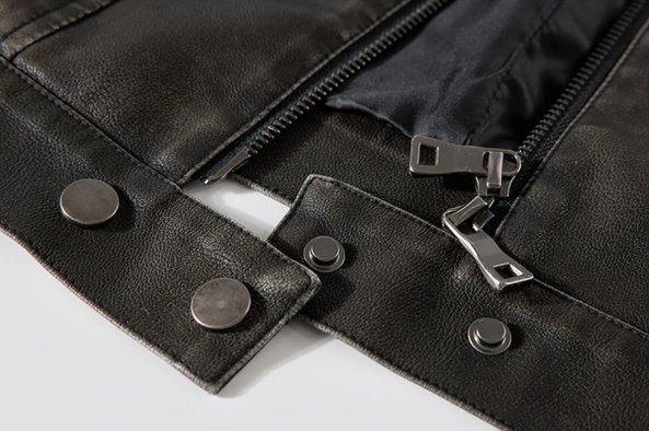 Black Faux Leather Classic Biker Jacket | Ningning – Aespa