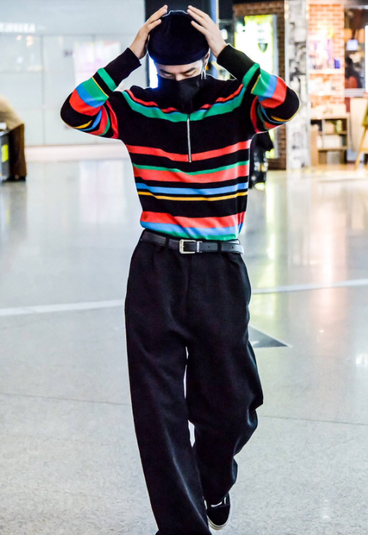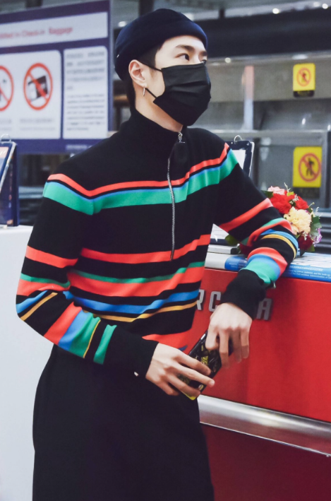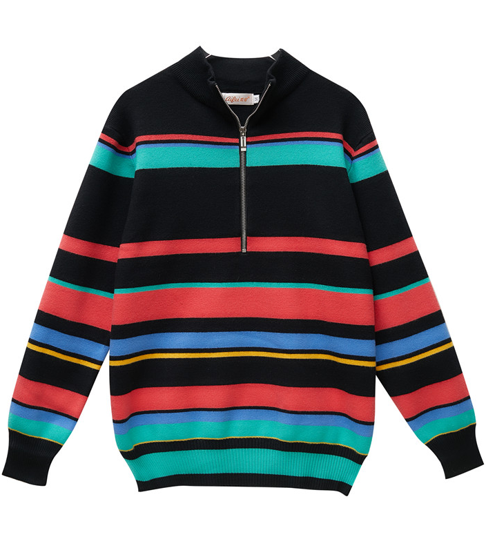 Black Mock Neck Sweater With Colorful Stripes | Jackson – GOT7