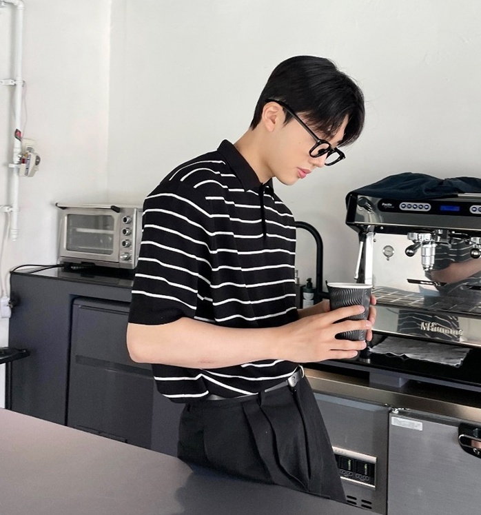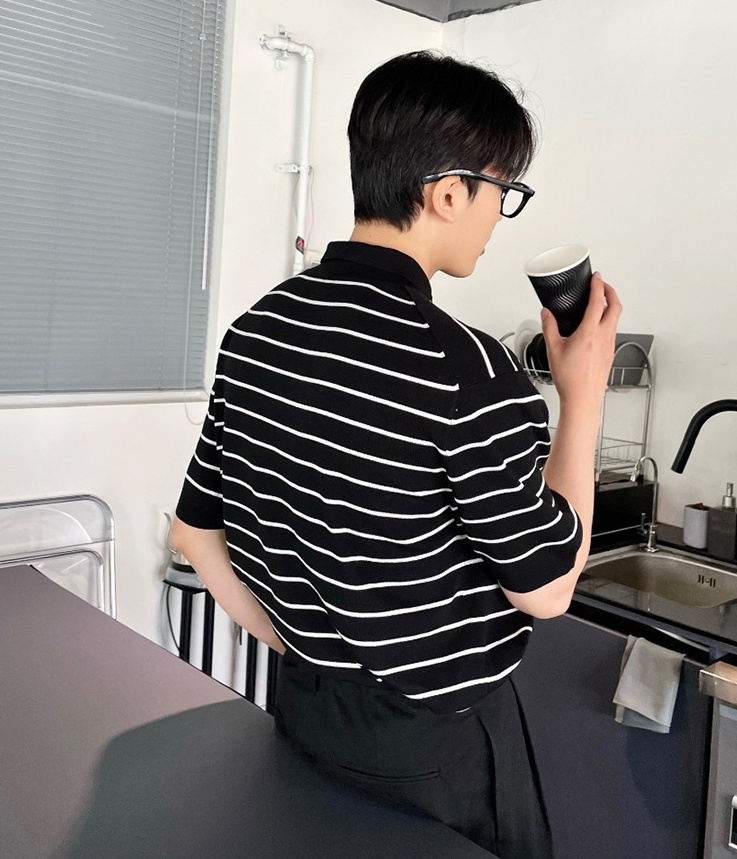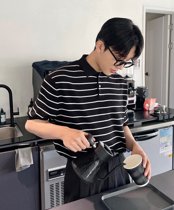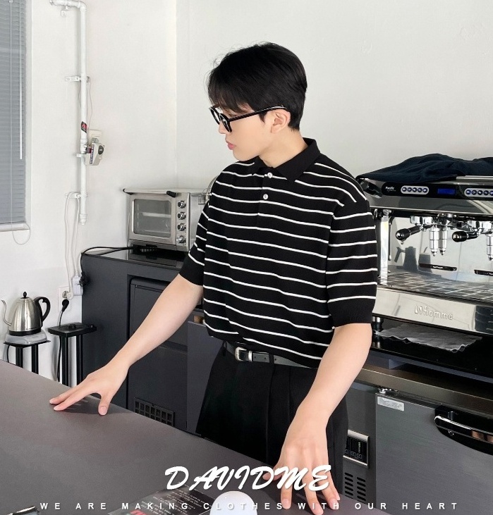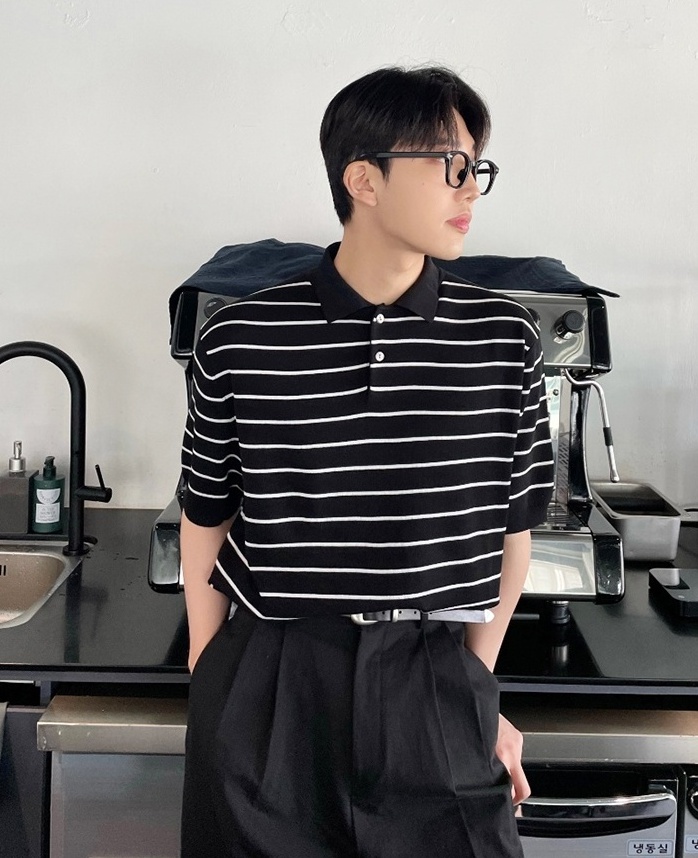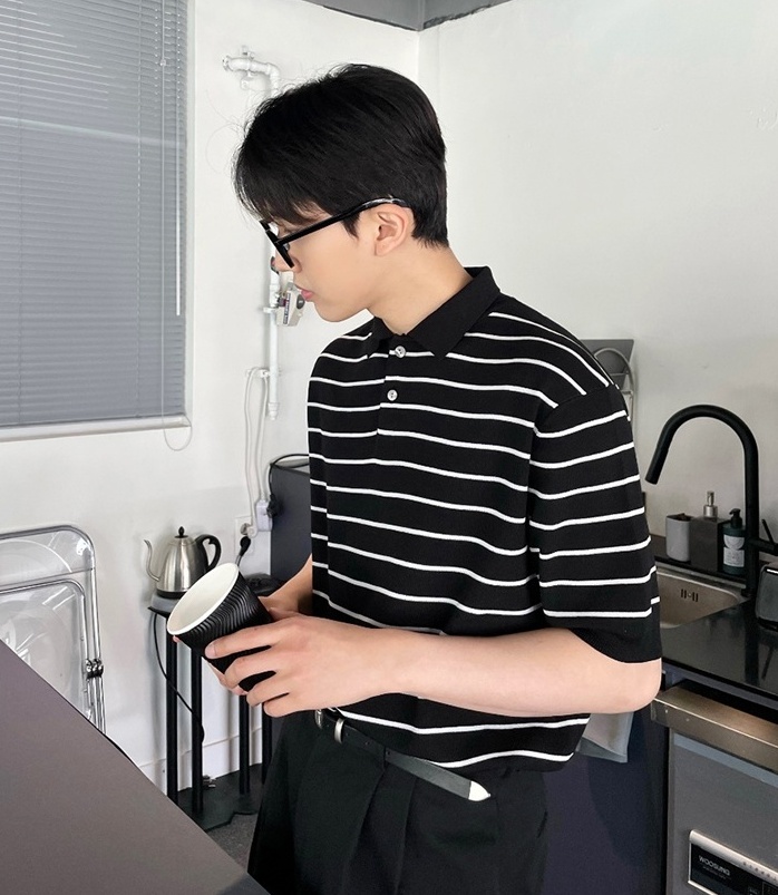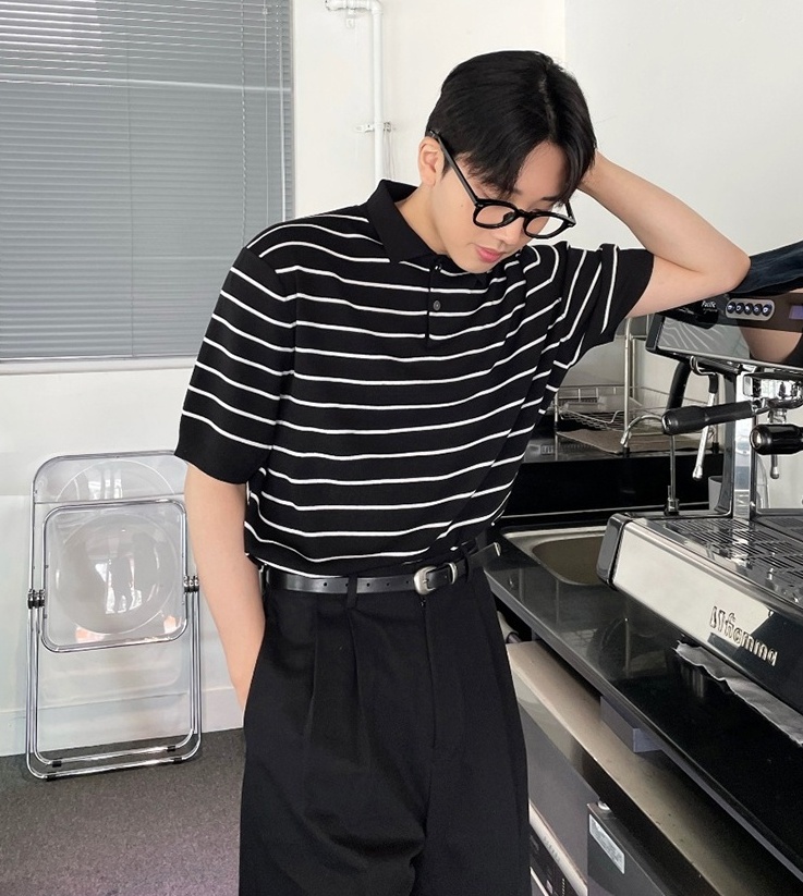 Black Striped Casual Polo Shirt | Changbin – Stray Kids