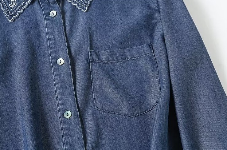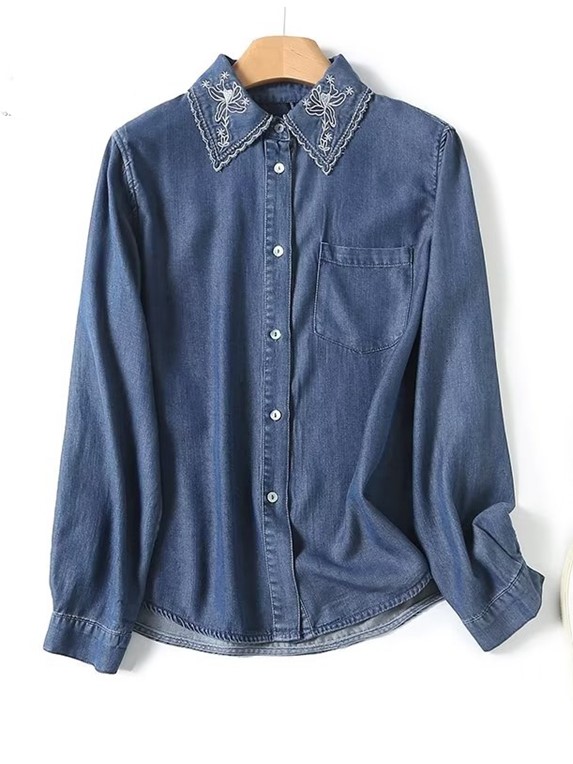 Blue Embroidered Collar Denim Shirt | Lisa – BlackPink