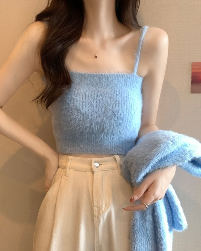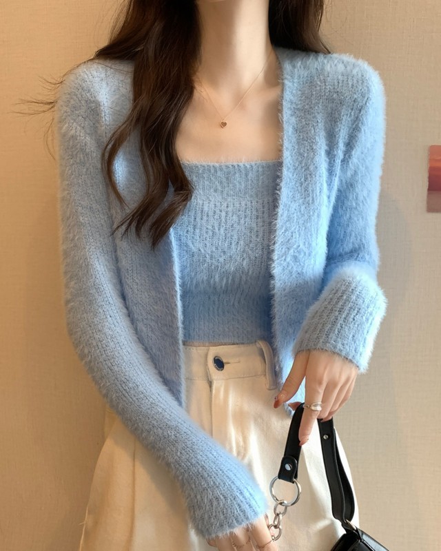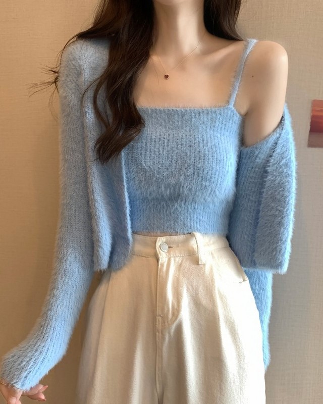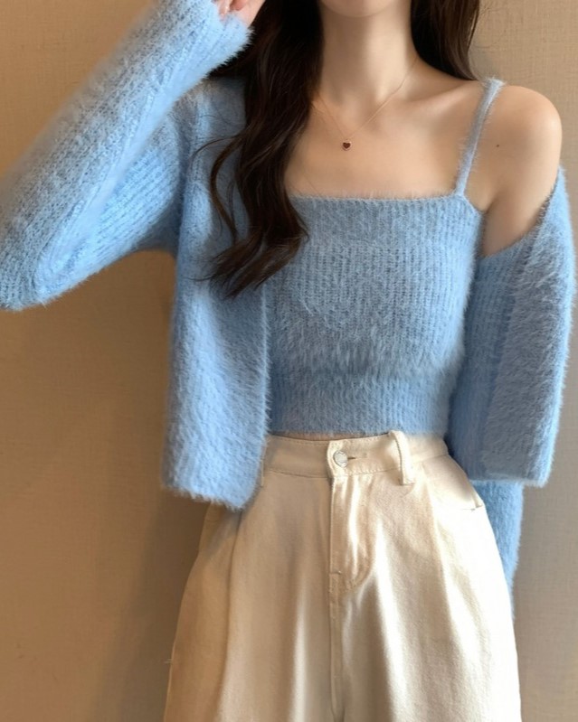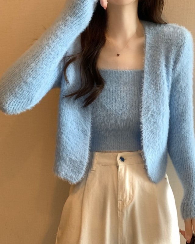 Blue Fluffy Sleeveless Crop Top and Cardigan Set | Soyeon – (G)I-DLE