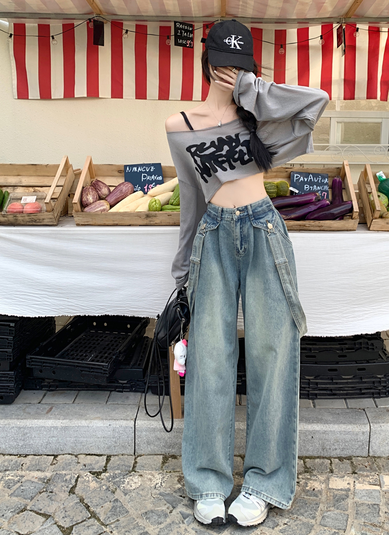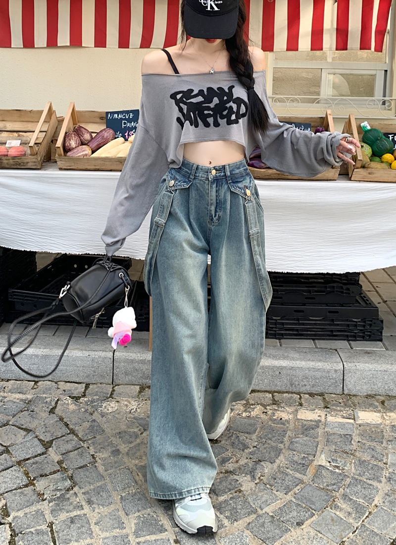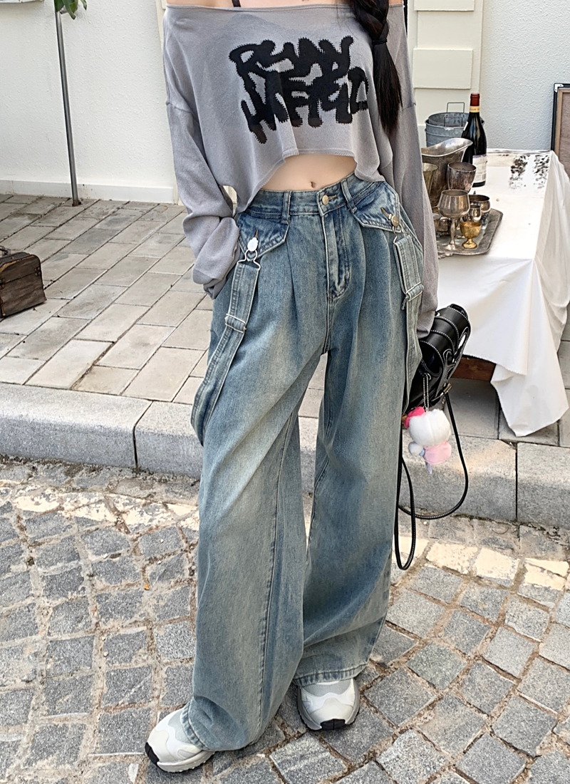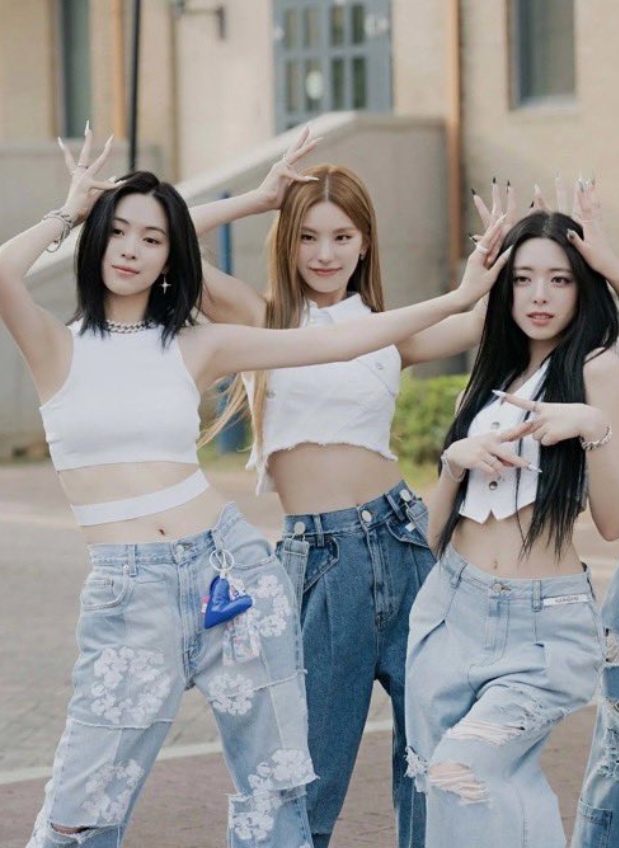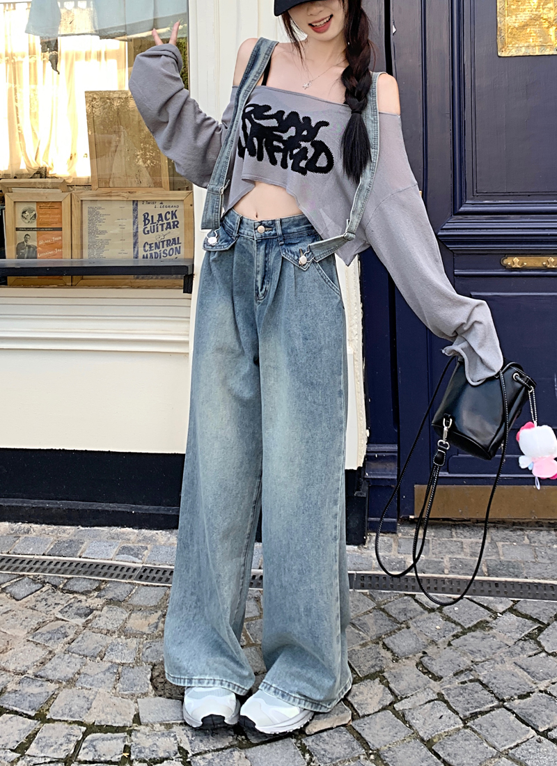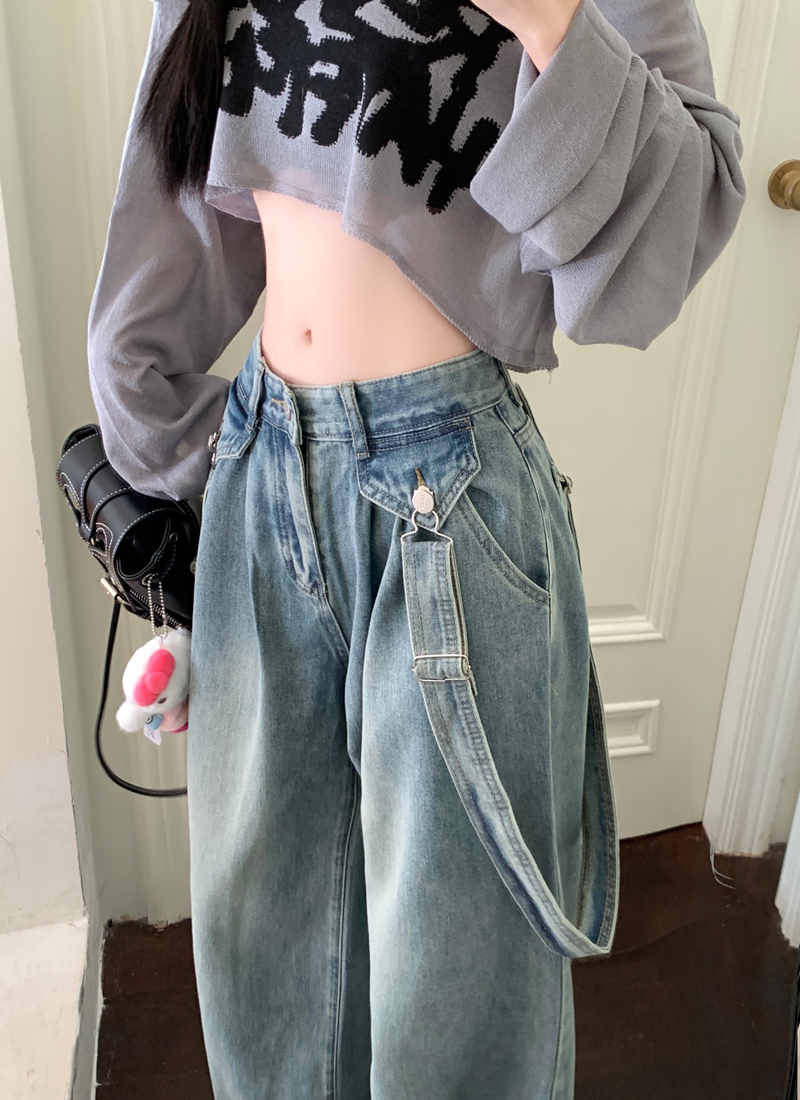Blue Straight Cut Denim Jeans With Suspenders | Yeji – ITZY