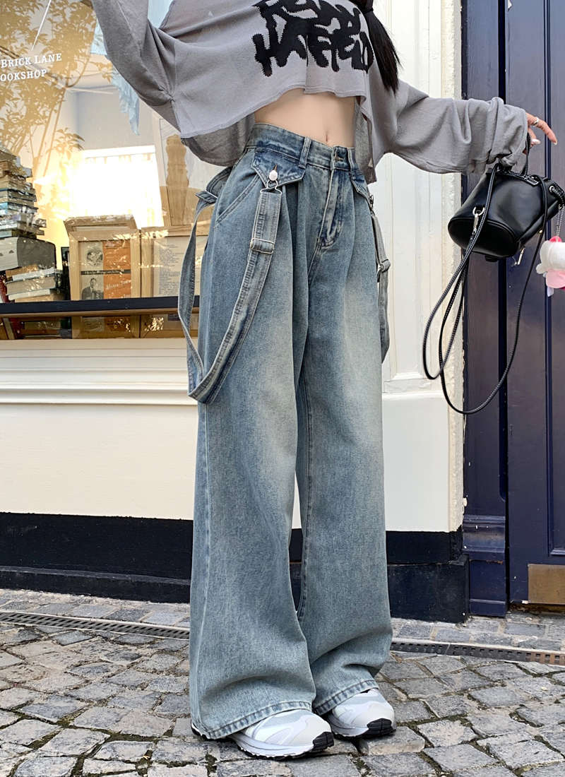 Blue Straight Cut Denim Jeans With Suspenders | Yeji - ITZY