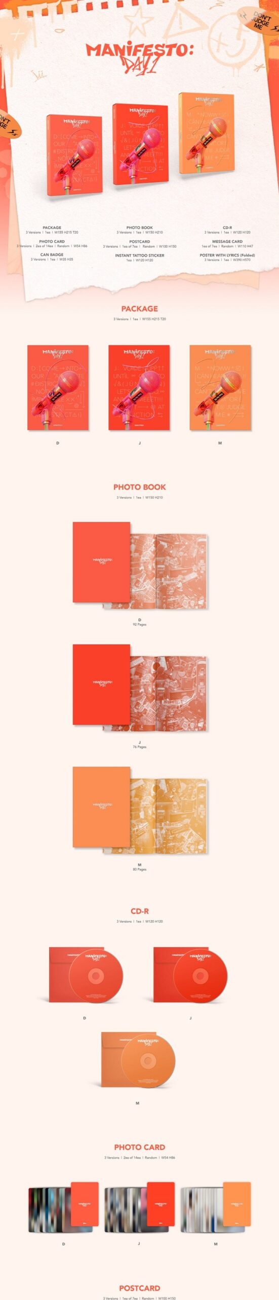 - Photobook Set: 92 pages (D) + 76 pages (J) + 80 pages (M)