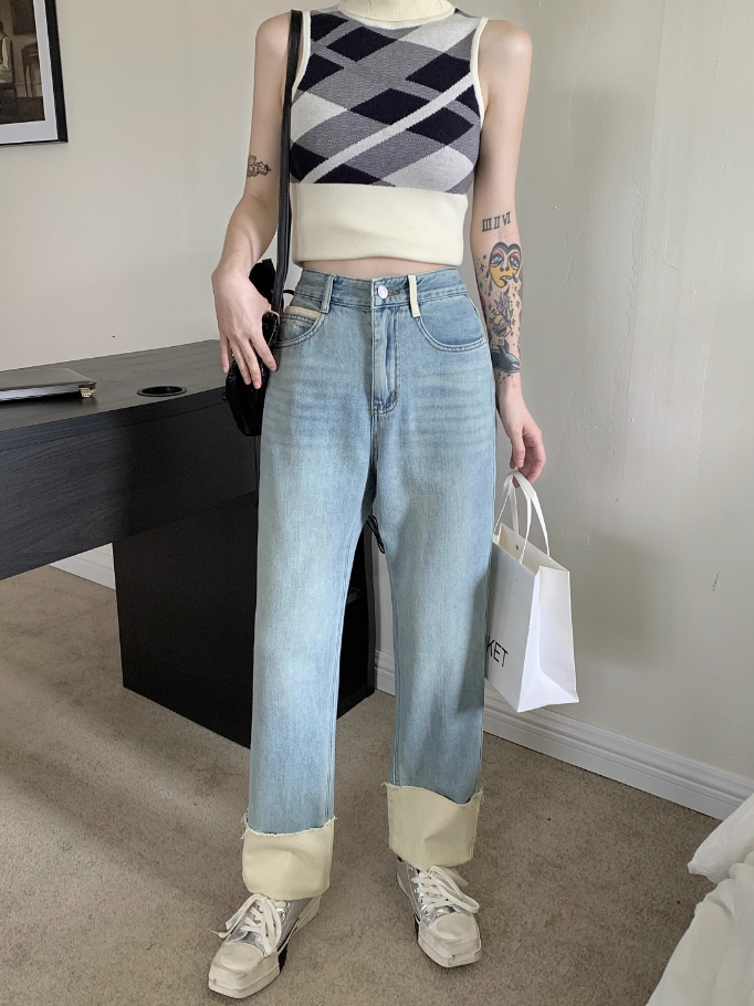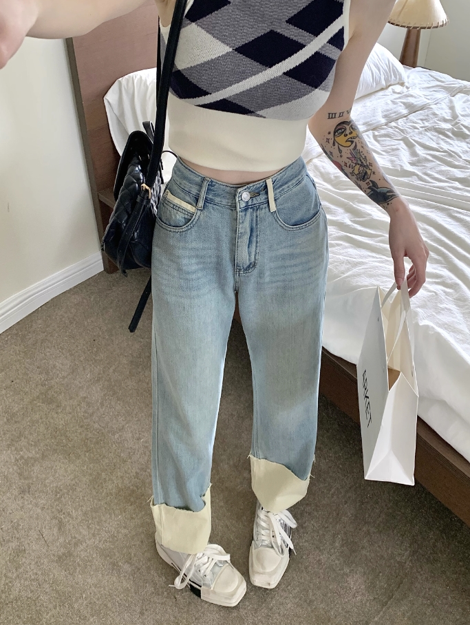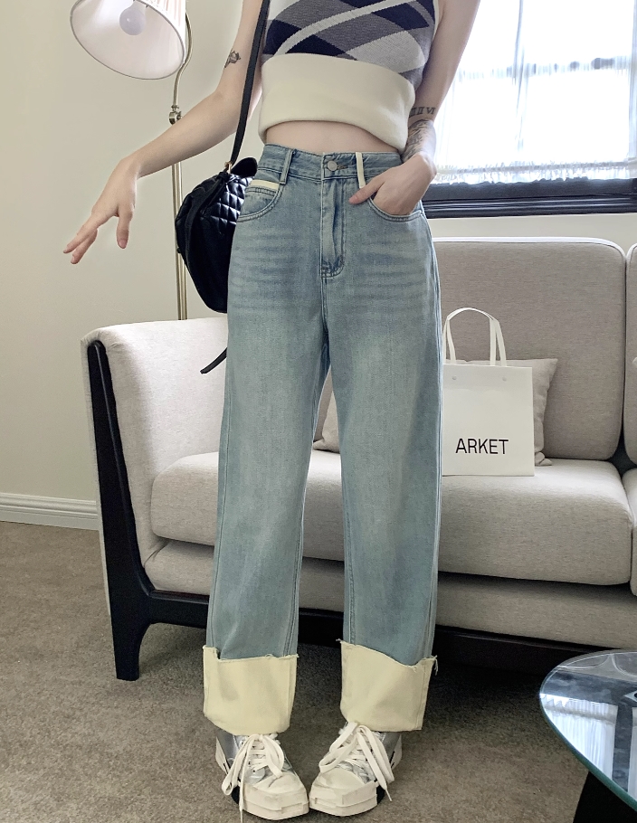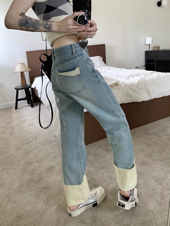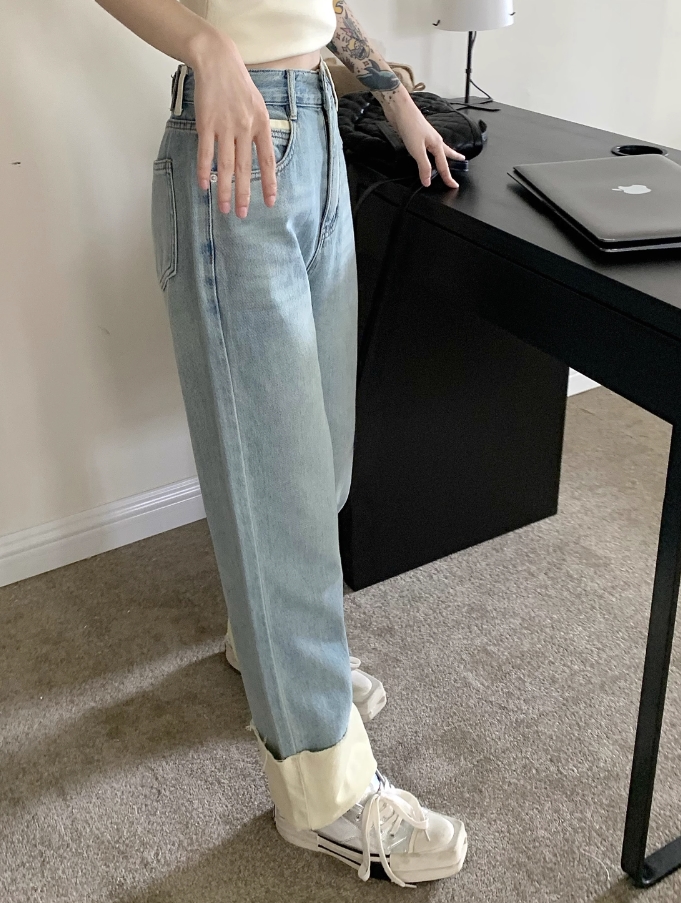 Blue Folded Hem Denim Jeans | Jin – BTS
