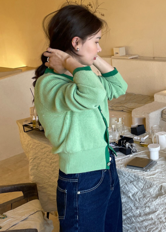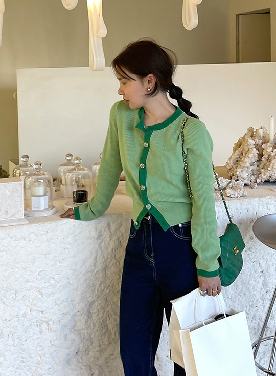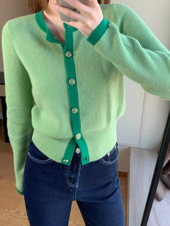 Green Long Sleeve Buttoned Cardigan | Joy – Red Velvet