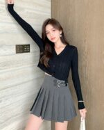 Grey Buckled Pleated Skirt | Winter – Aespa