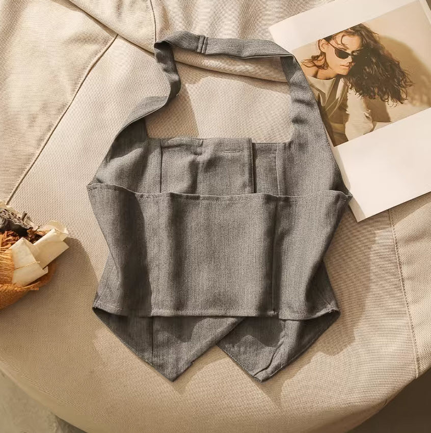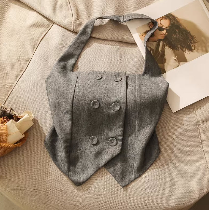 Grey Buttoned Halter Vest | Jennie - BlackPink