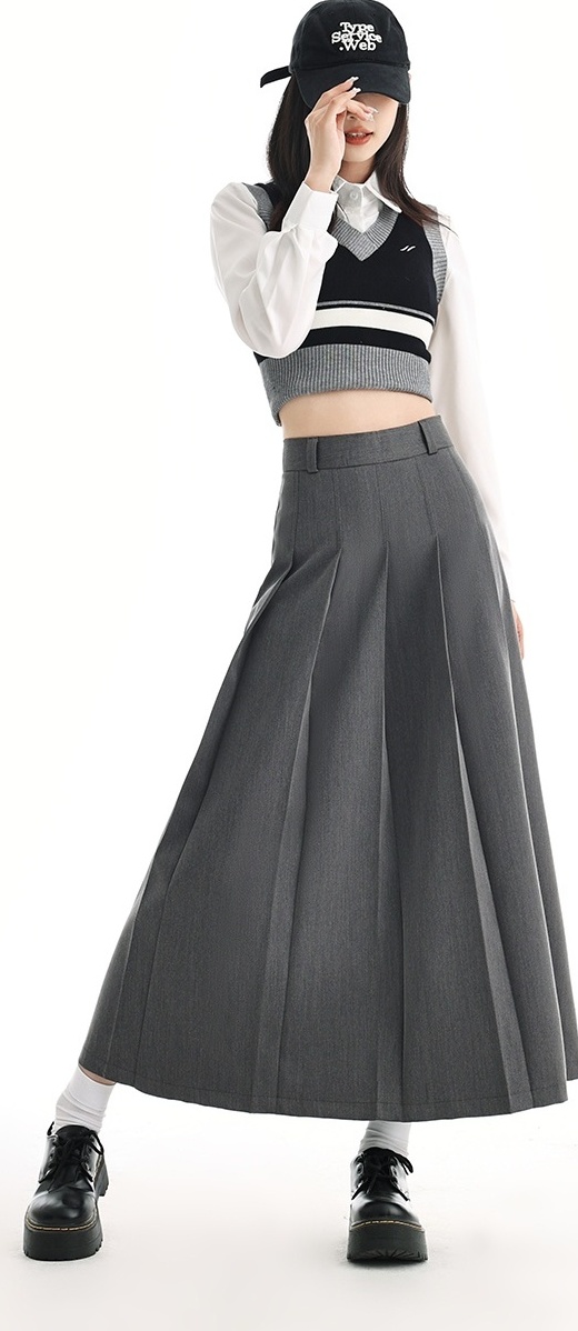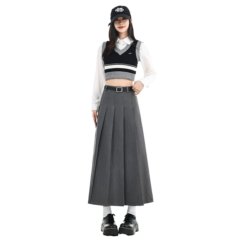 Grey Pleated Long Skirt | Yoon – STAYC