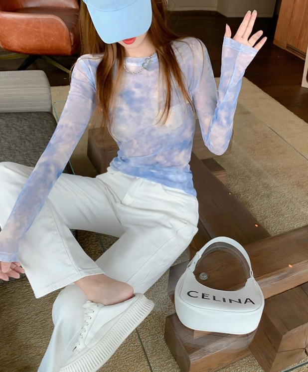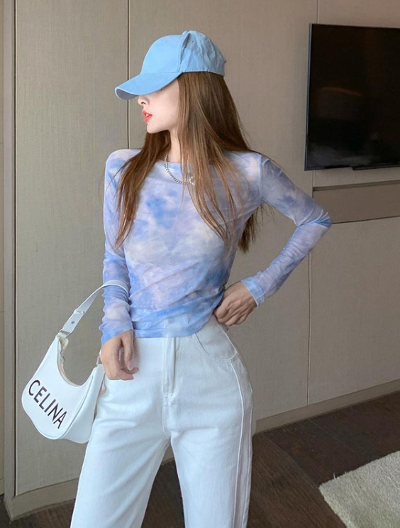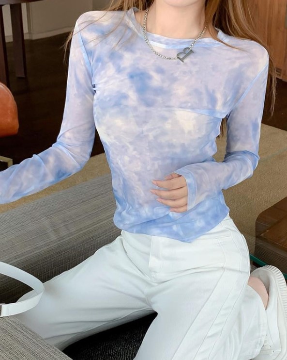 Light Blue Tie-Dye Clouds Mesh Top | Danielle – NewJeans