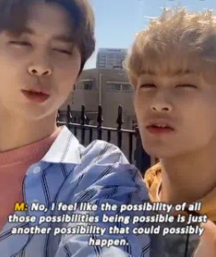 The quote “The possibility of all those possibilities being possible is just another possibility that can possibly happen” is one of NCT’s Mark Lee’s iconic and memorable sayings.