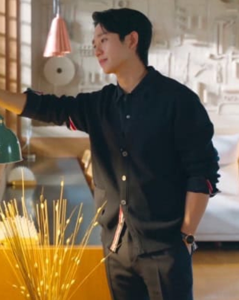 Navy Blue Banded Sleeves Cardigan | Choi Seung Hyo – Love Next Door