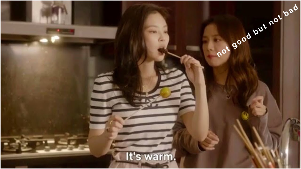 The phrase “Not bad but not good” from BLACKPINK’s Jisoo became popular during a segment of the reality show “BLACKPINK House.” Jisoo made this comment while tasting a sweet snack, describing it in her characteristically candid and humorous manner.
