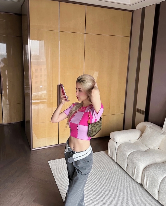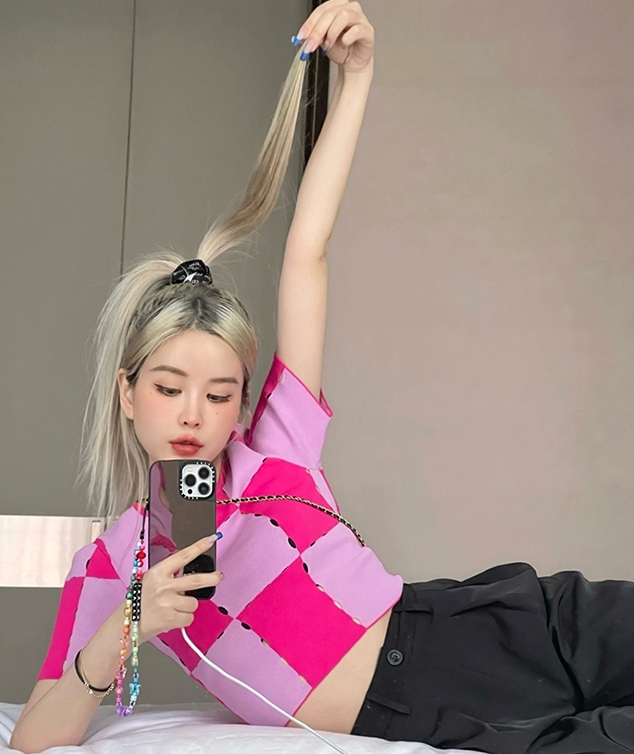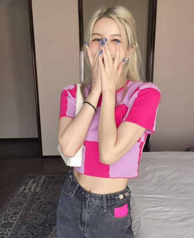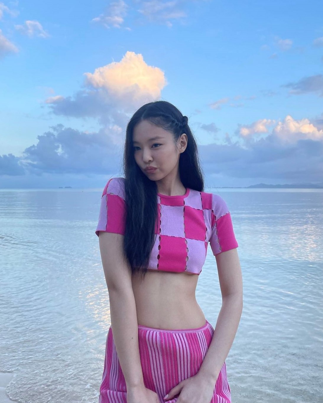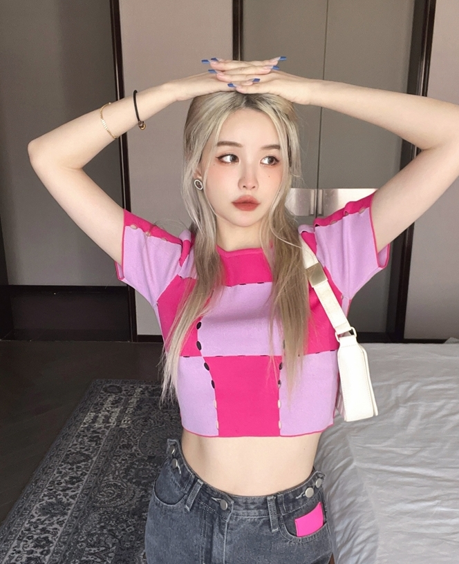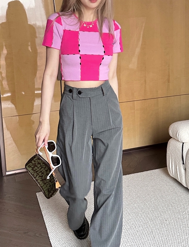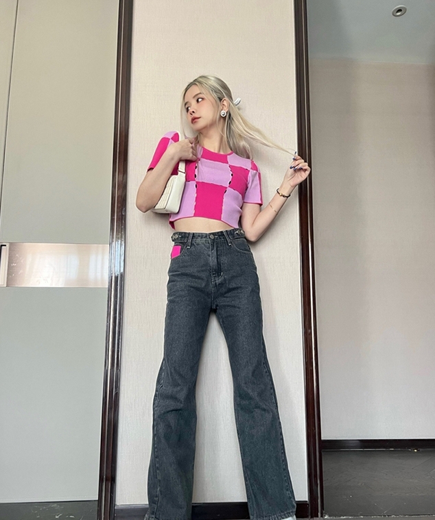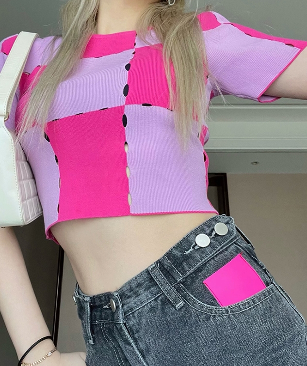 Pink Checkered Stitched Crop T-Shirt | Jennie – BlackPink