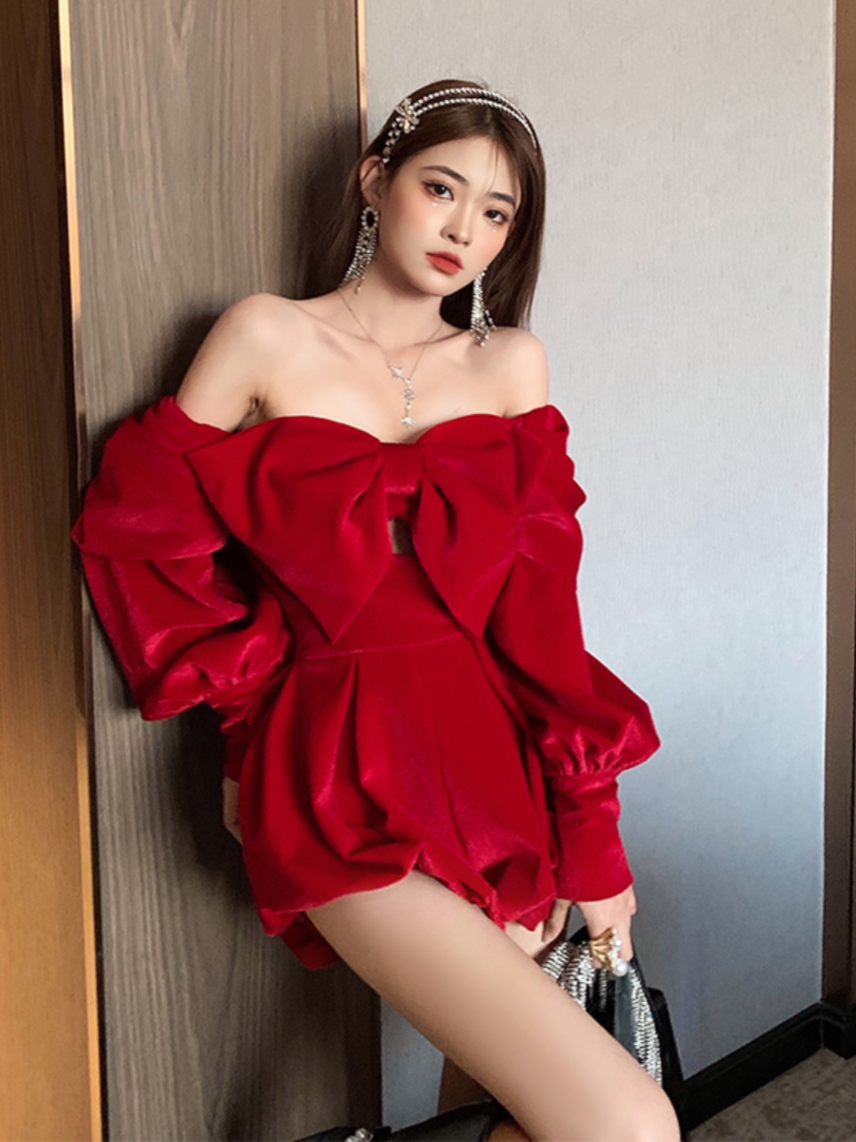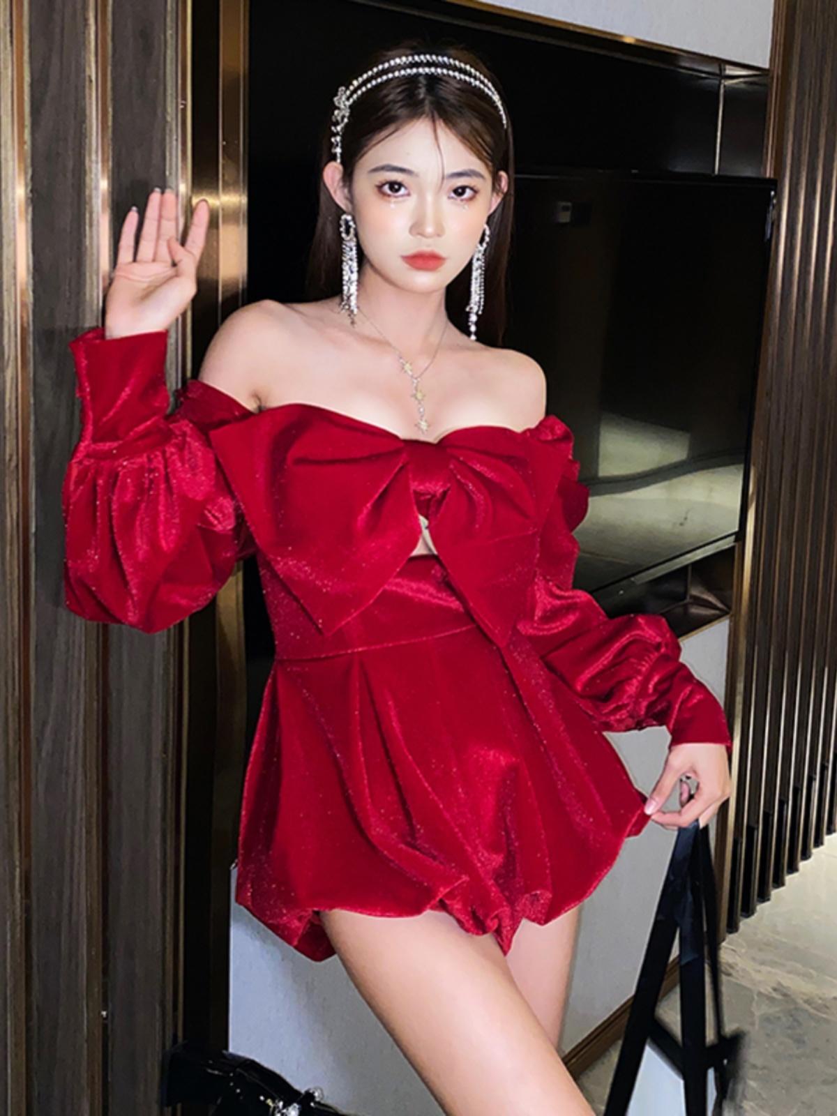 Red Big Bow Off-Shoulder Dress | Nayeon – Twice