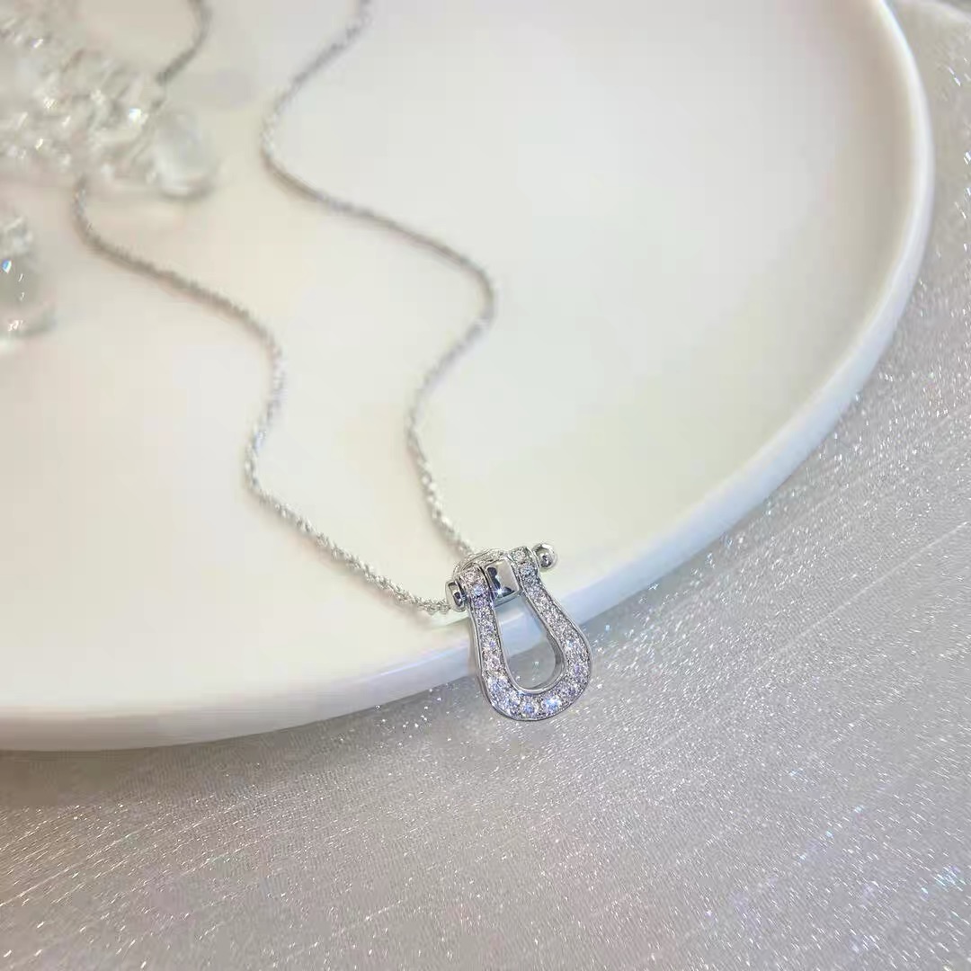 Silver U-Pendant Crystal Accent Necklace | Jin – BTS