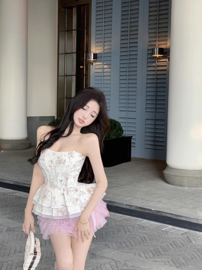 White Floral Peplum Corset Tube Top | Jennie – BlackPink