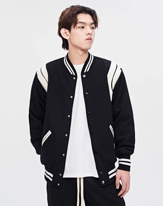 White Lined Black Baseball Jacket | Rose – BlackPink