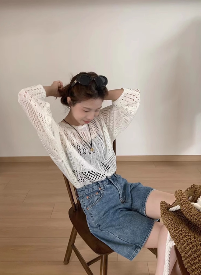 White Multi-Pattern Hollow Sweater | Taehyung - BTS