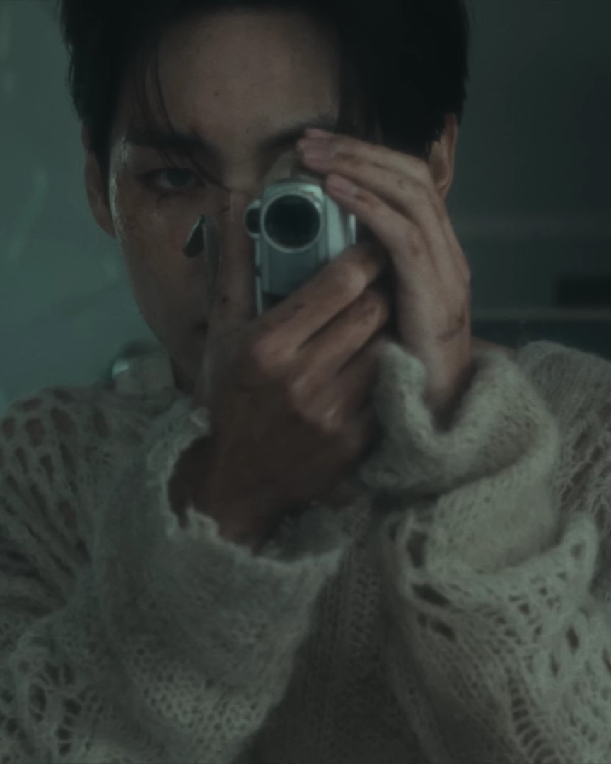White Multi-Pattern Hollow Sweater | Taehyung – BTS